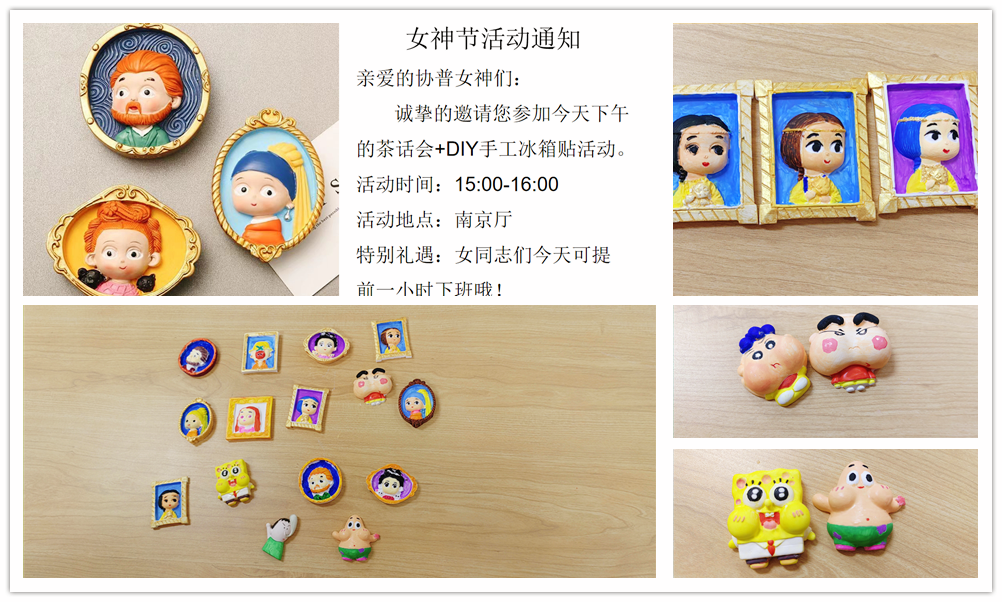 2023年3月8日,值此婦女節(jié)到來之際,協(xié)普不僅為在廠的各位女士準(zhǔn)備了暖心的生活禮品,還將大家聚在一起舉辦了輕松愉快的手繪活動(dòng)?,F(xiàn)場氣氛歡快,大家悠閑地完成了各自的手繪冰箱貼,活動(dòng)結(jié)束后全體女同志提前下班,開心地結(jié)束了一天的工作。